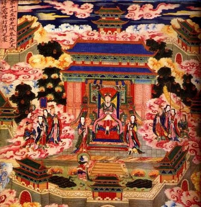 進了城門,門內又有一對童男童女站立兩旁迎接,又跟隨善財往裡走。